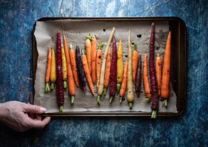 Add the carrots, honey (or agave syrup, to make it vegan), thyme, water and two tbsp of the De Nigris Thick & Intense Balsamic Vinegar of Modena to a large lidded pan, cover, and allow to simmer for 10 minutes. Remove the lid, sprinkle with salt, drizzle with remaining Balsamic Vinegar, and serve. Simple. Hop to it!