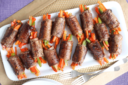 Tender steak rolls filled with zesty vegetables and drizzled with a glaze that is simply out-of-this-world delicious. This is a fun, easy and adaptable recipe of pan seared steak rolls stuffed with veggies and topped with a delicious balsamic glaze sauce.