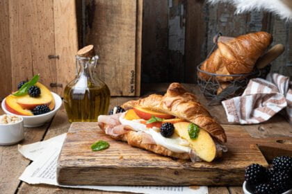 This Croissant with Prosciutto di Parma, Burrata, Blackberries and Peaches is simple and delicious. Try it with De Nigris Apple Cider Vinegar with Mother