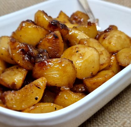 Increase heat to high, sprinkle turnips with garlic powder and cook, turning carefully, until tender and browned. Stir in honey, Thick & Intense Balsamic Vinegar of Modena and oil mix and add more salt and pepper to taste. Sit and allow to caramelise, remove from heat and serve warm.
