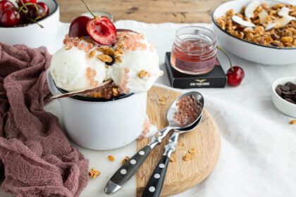 Oggi vi proponiamo un gustoso Frozen Yogurt con Granola e Perle di Modena all’Amarena
